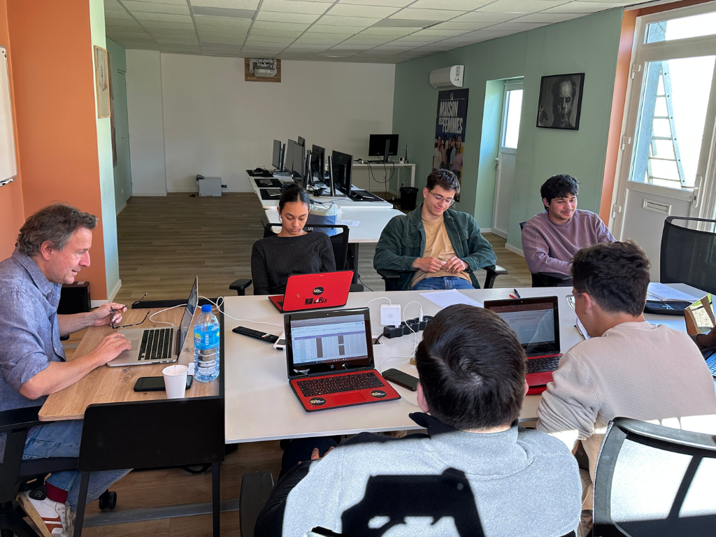 Accompagnés par Franck, les étudiants travaillent sur la construction de leur scénario. Structure narrative, développement des personnages, cohérence du récit.