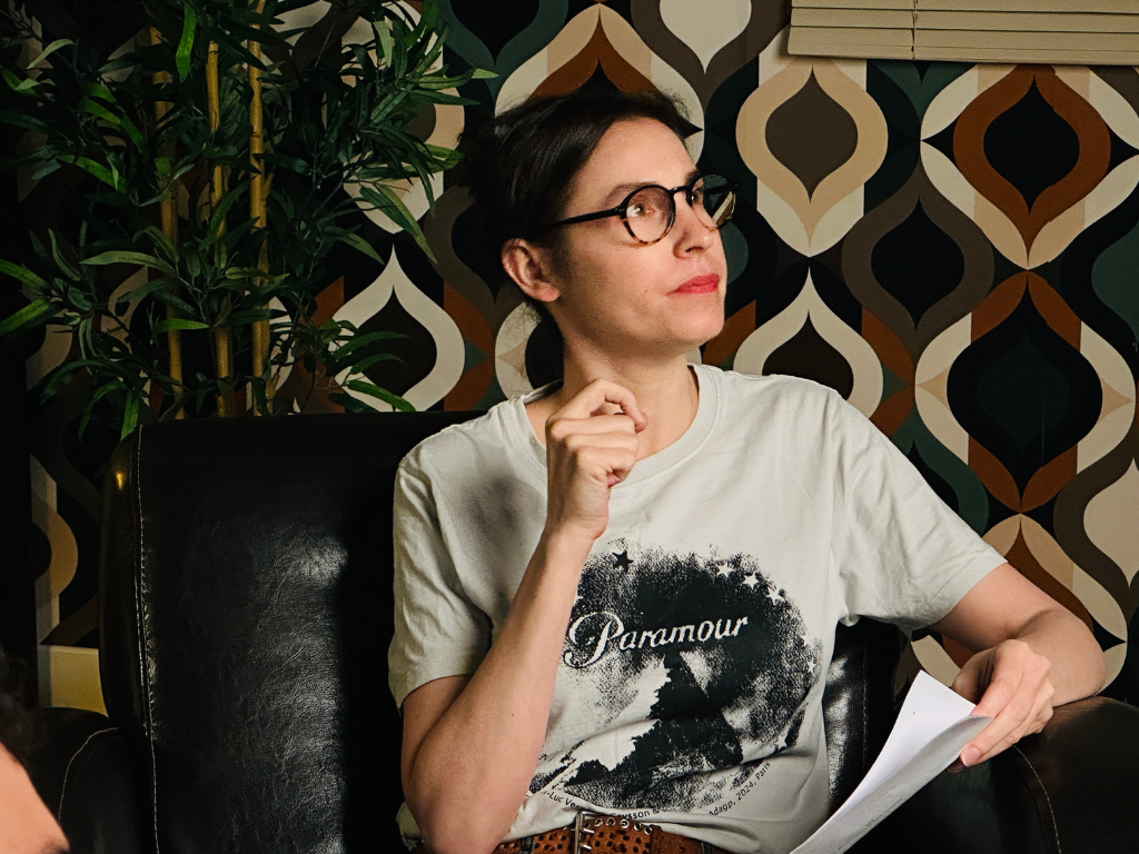 Nous avons récemment eu le plaisir d’accueillir Anne Azoulay le jeudi 9 avril, comédienne reconnue pour la diversité de ses rôles au cinéma et à la télévision. Elle a joué dans des films comme boite noire, 6 jours, numéro une ou encore l’exercice de l’état et dans les séries Privilèges, Furies, le Bureau des légendes et bien d’autres. Au cours de son intervention, elle a partagé avec les étudiants les exigences du métier d’acteur : travail sur les émotions, préparation des rôles, importance de l’écoute et de la collaboration sur un plateau. Elle a également travaillé avec eux sur un passage de leur scène pour leur court métrage.