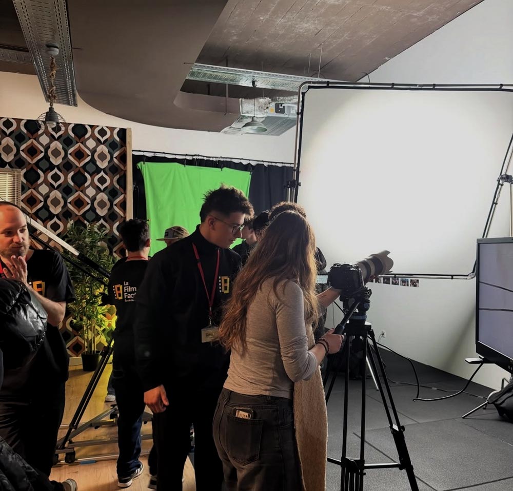 On a adoré voir vos yeux s’écarquiller dès que vous avez découvert le studio. On avait tout préparé pour vous offrir une vraie immersion : caméras et optiques installées, lumières prêtes, plateau organisé, grue et travelling en position… Le but était simple : que vous puissiez toucher, tester, comprendre, exactement comme les étudiants à ce jour. Certains d’entre vous ont même pu manipuler le matériel à travers de petits exercices.